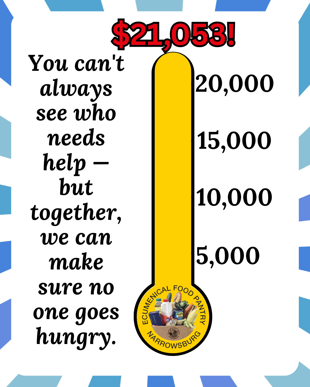 Between October and December 31, 2025, we raised $21,053 for the Food Pantry — thanks to the incredible generosity of our community. 💛